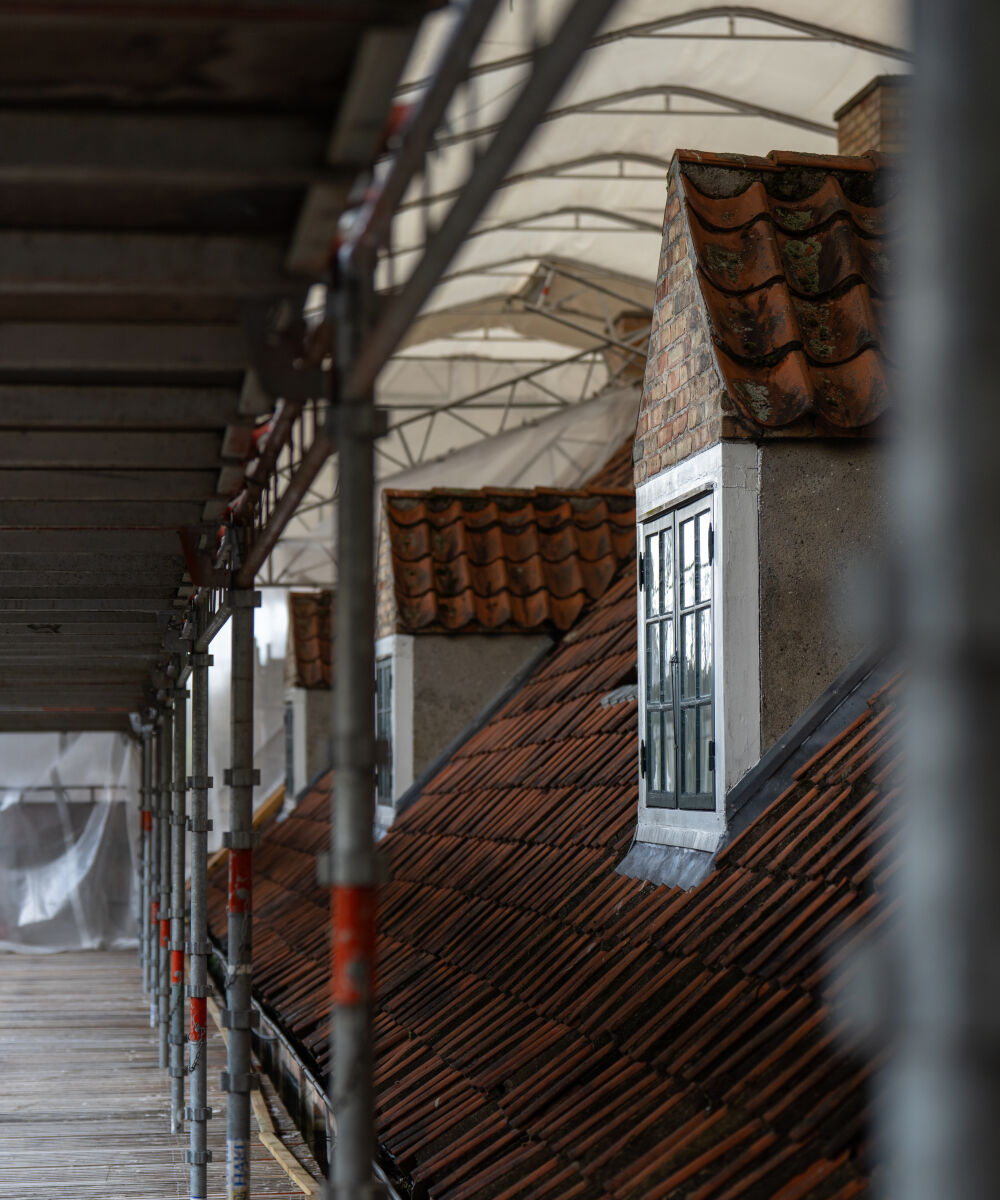 Barberens totaloverdækningDa kunden på Vanløsegård skulle i gang med at udskifte knap 4.000 m² tag, leverede vi et let facadestillads fra HAKI med konsol og tæt finerafdækning ved tagfoden. Stilladset skulle udelukkende bruges til tagarbejdet, og løsningen blev valgt for sin fleksibilitet og effektivitet. Bygherren prioriterede en let og funktionel konstruktion, der kunne sikre en sikker arbejdsplads og et effektivt forløb fra start til slut.