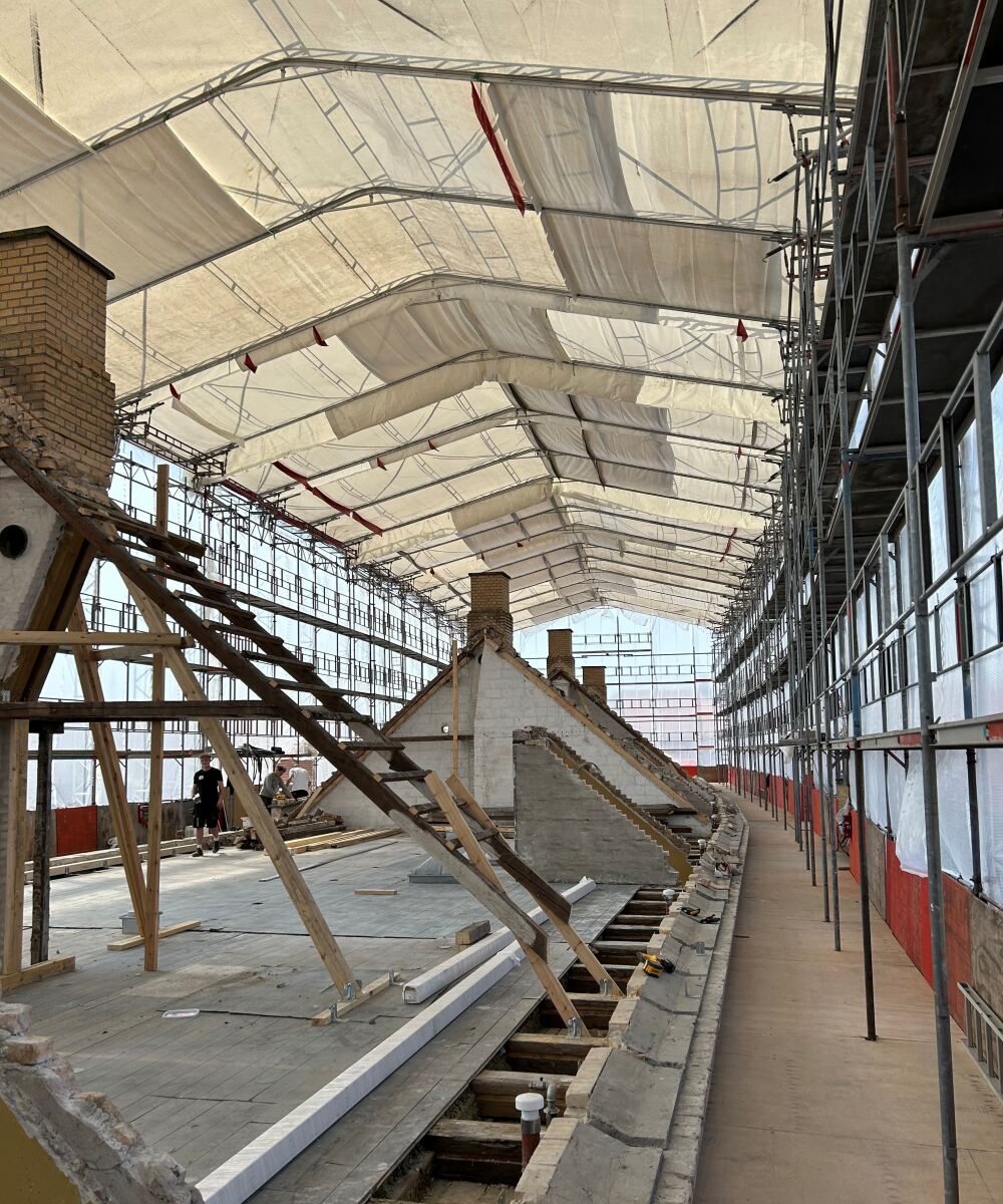 Ved et omfattende tagprojekt på Bakkehusene i Københavns Nordvestkvarter leverede vi en solid og stabil løsning. Over tre år skulle Byens Tag & Facade udskifte mere end 12.000 m² tag, og opgaven krævede både høj bæreevne og stor fleksibilitet. Vi stod for opbygning af svært stålstillads med traller samt TKS-overdækning fra HAKI – en robust konstruktion, der sikrede effektivt og sikkert arbejde året rundt.