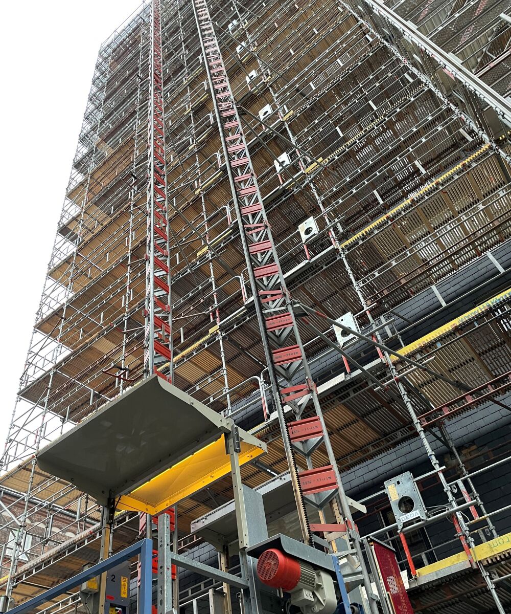 Barberens murerstilladsVed udskiftning af alle facadevinduer på en 52 meter høj bygning ved Nordhavnen leverede vi GEDA 1500 Z/ZP – et hejs med kapacitet op til 2.000 kg og mulighed for persontransport. Løsningen sikrede hurtig og sikker transport af både nye og gamle vinduer uden at belaste logistikken. Vi tilbyder hejs i flere størrelser – fra GEDA 200 til 1500 samt topmonteret wirehejs – og rådgiver gerne om den rette løsning.